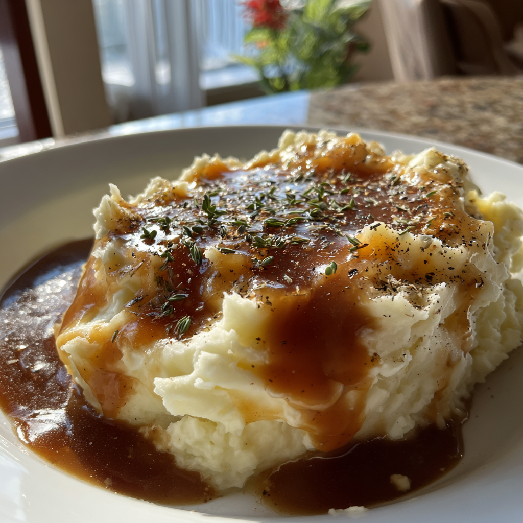 You want the perfect side dish? Indulge in Creamy Mashed Potatoes with Rich Homemade Gravy for a comforting meal. Get the recipe and taste the magic!