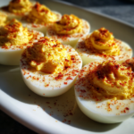 This classic deviled eggs recipe features creamy, tangy filling with a sprinkle of paprika for a perfect appetizer or snack.