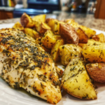 Keywords: baked chicken breast, herb roasted potatoes, juicy chicken recipe, easy chicken dinner