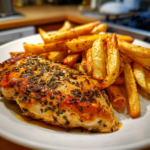 Imagine biting into a tender, juicy chicken breast that has been marinated to perfection, its succulent flavor bursting in your mouth. The accompanying fries, crisped to a golden finish, provide the ideal crunch, complementing the softness of the chicken. The colors of the dish come alive with the rich browns of the chicken and the bright golden-yellow of the fries, making it not just a meal but an experience. Are you ready to find out how to make your dinner unforgettable?