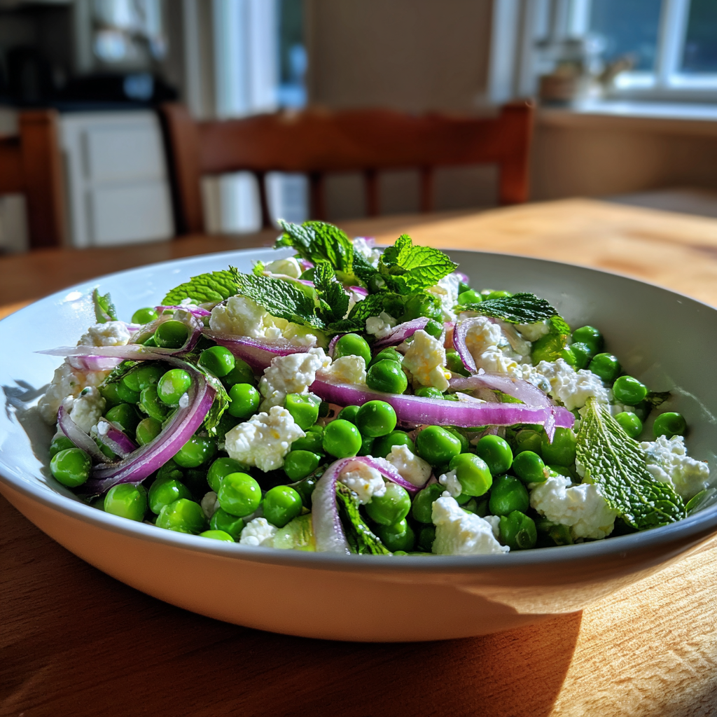 - Assemble the salad: In a large bowl, combine the cooked pasta, blanched asparagus, peas, halved cherry tomatoes, and thinly sliced red onion. Add the crumbled feta cheese and fresh herbs.