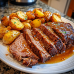 Serving: This dish is perfect for family-style serving. Arrange the sliced roast on a platter, surround it with crispy potatoes, and drizzle with gravy. Garnish with fresh herbs for an elegant touch.